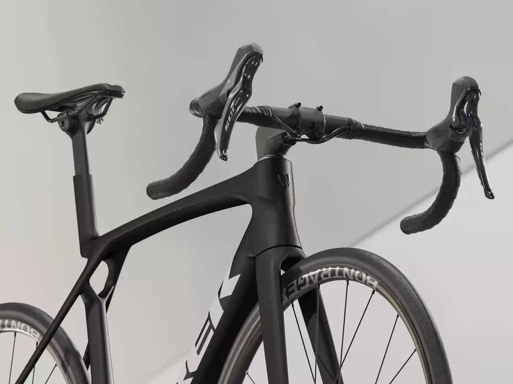 | Gabel | Madone Gen 8 full carbon, tapered carbon steerer, internal brake routing, flat mount disc, 12x100mm chamfered thru axle |